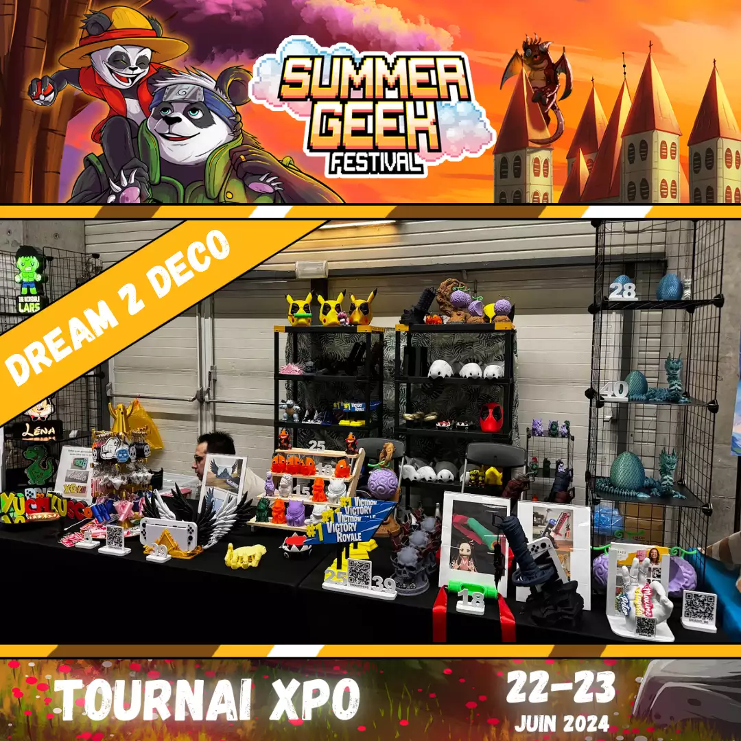 Nous avons le plaisir de vous annoncer que Dream 2 Deco sera présent au Summer Geek Festival ! Spécialisés dans la création d'articles uniques et personnalisés, nous proposons une large gamme de produits pour donner vie à vos idées :